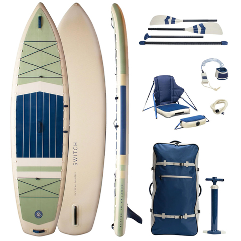 Inflatable स्टैंड अप पैडल बोर्ड और वयस्कों और युवाओं के लिए सीट-सुप पैडल बोर्ड सेट, गैर-पर्ची एवा डेक पैड